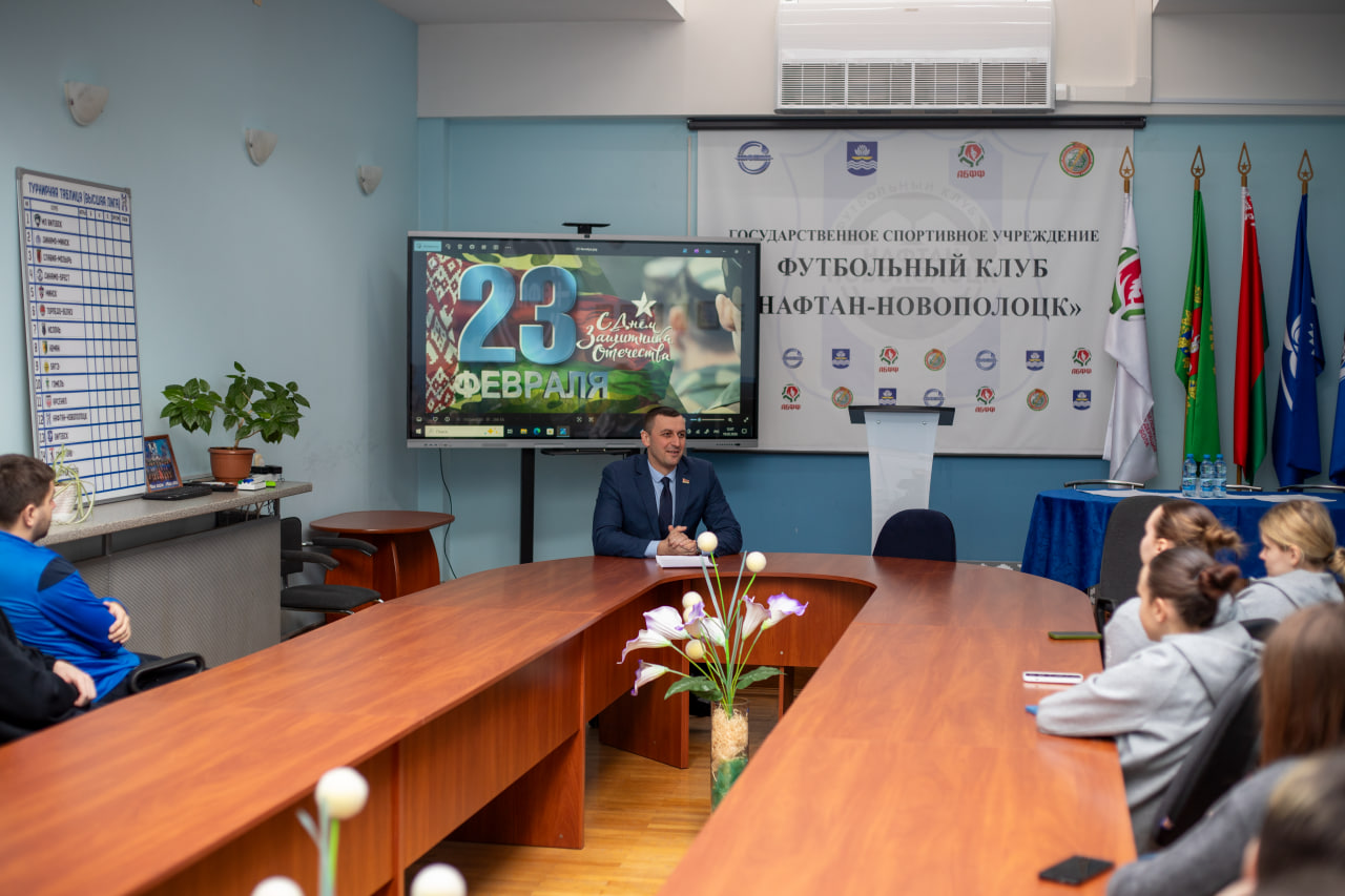 19 февраля в 12:00 на базе футбольного клуба "Нафтан-Новополоцк" состолся Единый день информирования на тему "Оборонительная мощь белорусской армии и патриотизм в современных условиях".