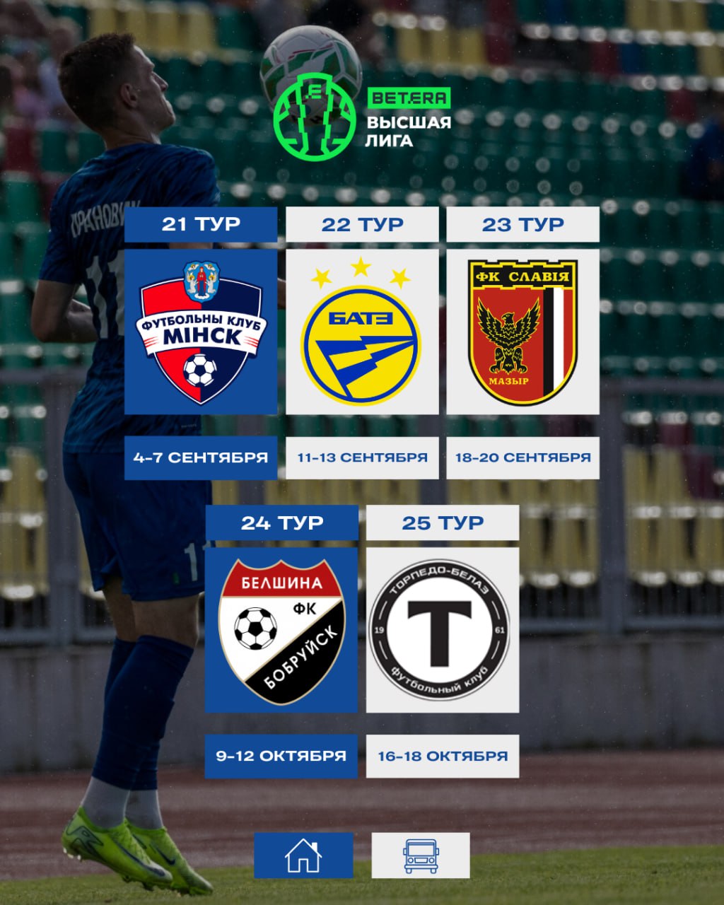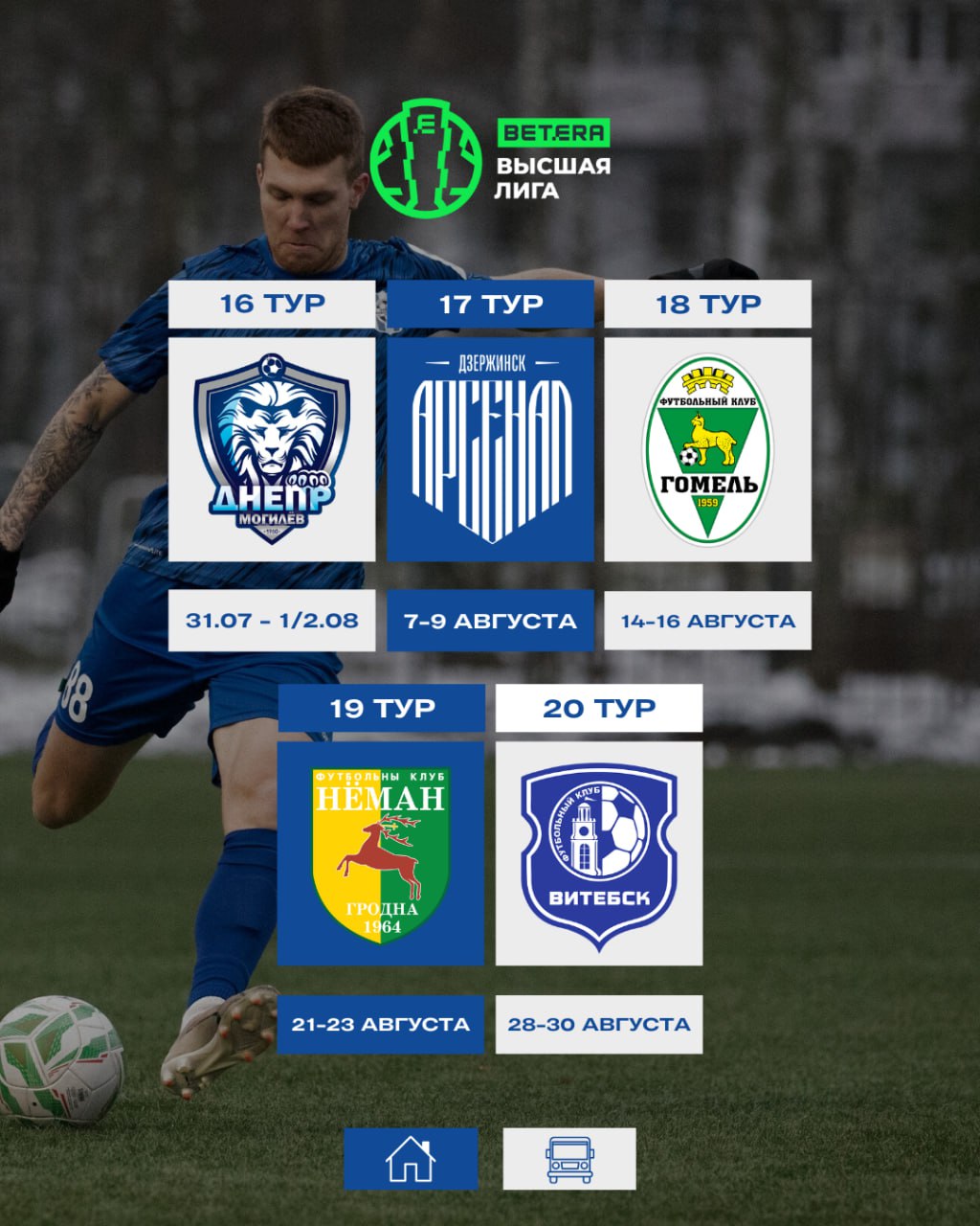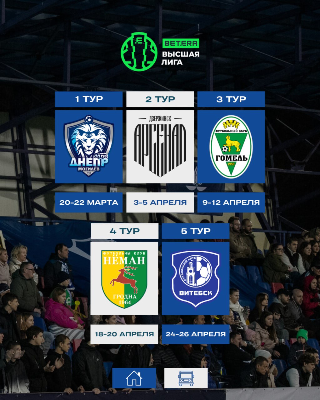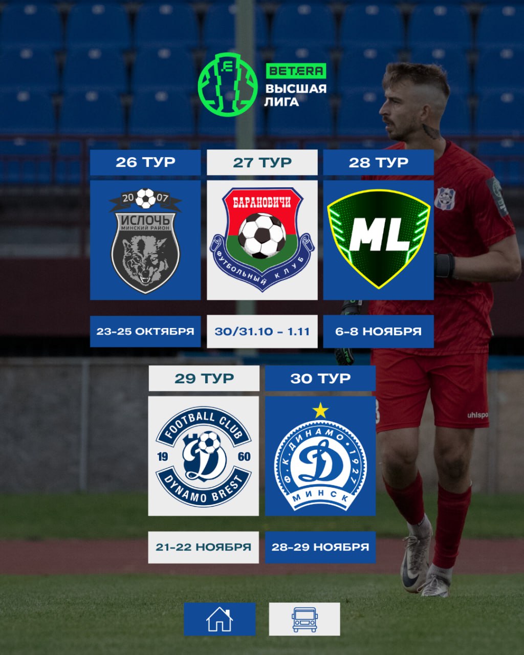 Вашему вниманию полное расписание игр чемпионата для нашей команды. Первый и тридцатый тур сыграем дома.