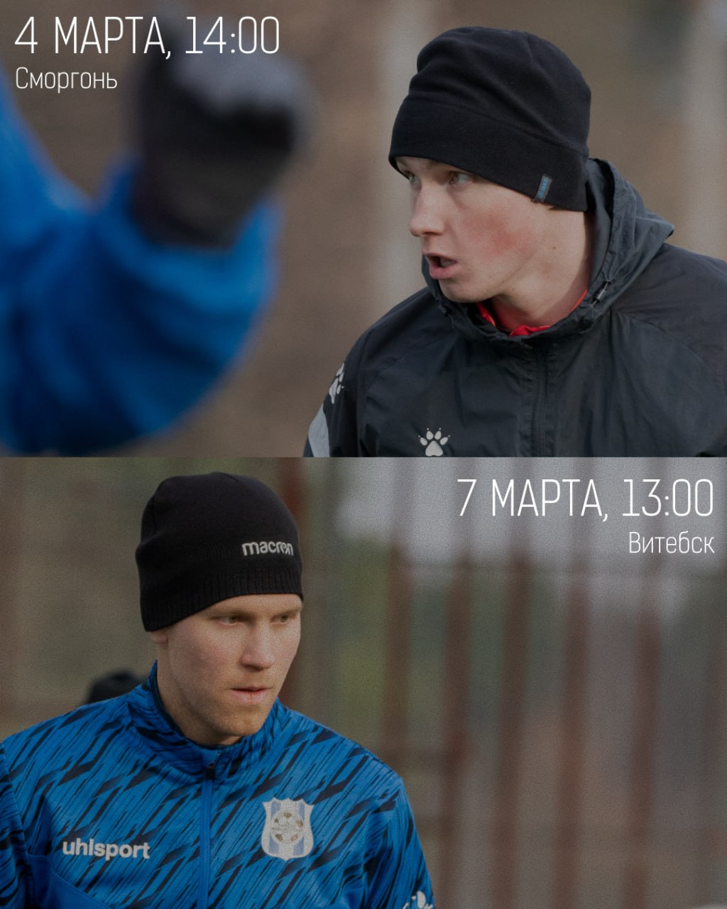 На следующей неделе нас ждёт 2 товарищеских матча. Первый состоится 4 марта на выезде. Отправимся в Сморгонь, где сыграем с одноименной командой. Начало матча — 14:00.