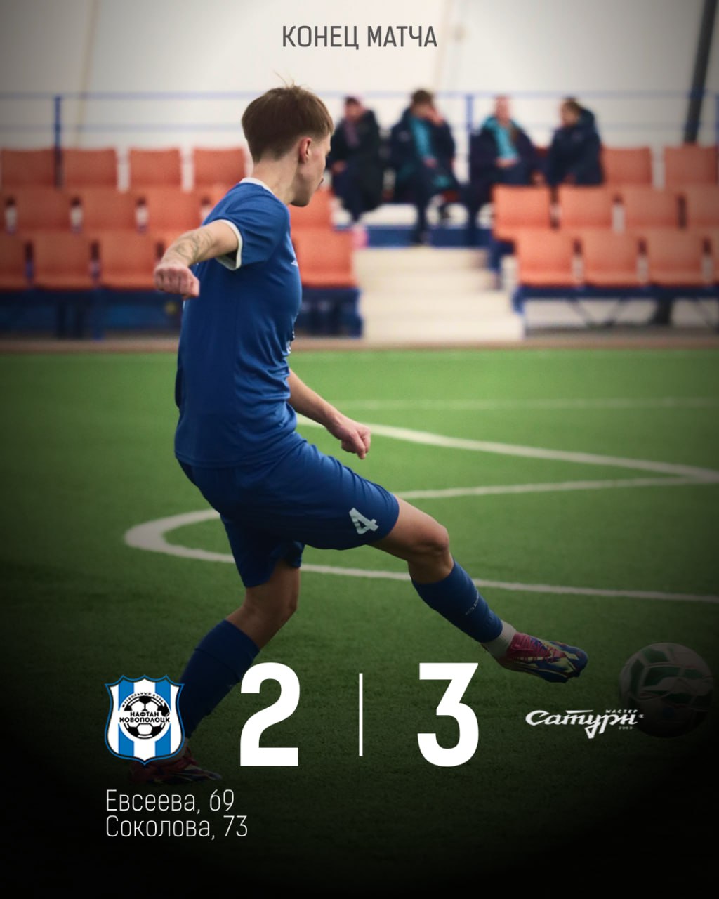 В третьем матче турнира уступаем российскому «Мастер-Сатурну» со счётом 2:3. Проигрывая по ходу встречи 0:2, смогли отыграться во втором тайме — голы на счету Марии Евсеевой и Анастасии Соколовой. Однако, за 8 минут до конца основного времени соперник смог выйти вперёд — 2:3.