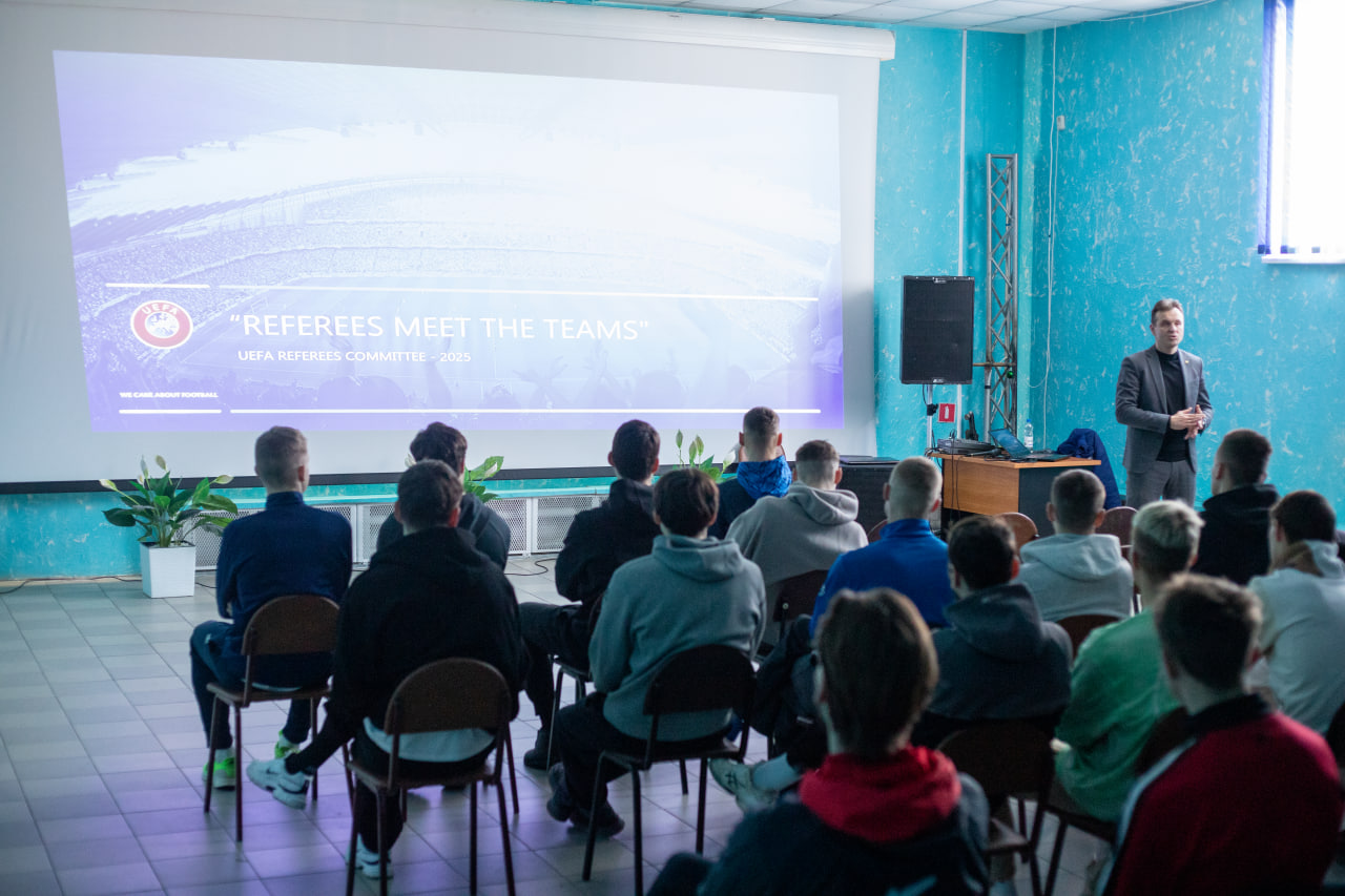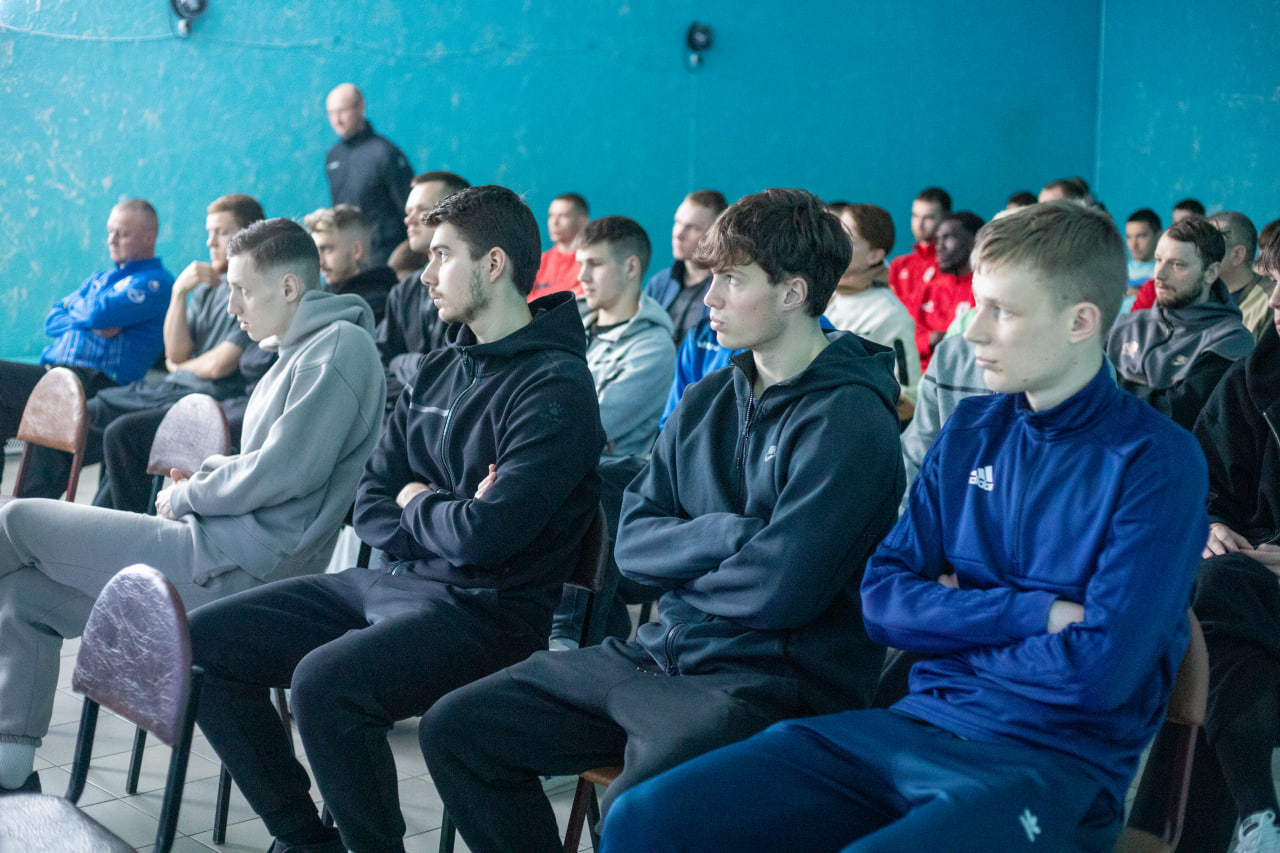 04.03.26 г. в Сморгони, перед товарищеским матчем начальник Департамента судейства и инспектирования АБФФ Владимир Кузьмин провёл судейский семинар с футболистами нашего клуба. На нём были объяснены изменения в правилах игры, такие как: правило 8-ми секунд для вратаря, взаимодействие капитана команды с главным судьей. Так же были объяснены самые спорные моменты за прошлый год..jpg)