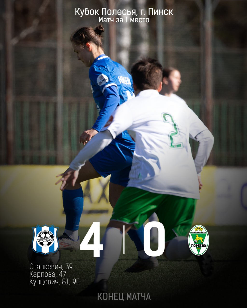 Обыгрываем женский футбольный клуб «Гомель» со счётом 4:0 и занимаем 1 место на турнире в Пинске!