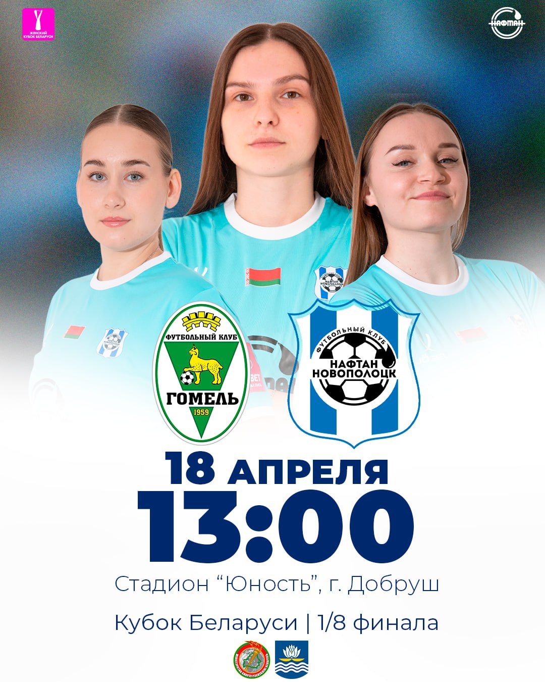 18 апреля в 13:00 начнётся матч 1/8 финала FONBET — Женского Кубка 2026. Наши девушки сыграют на выезде против женского футбольного клуба «Гомель».