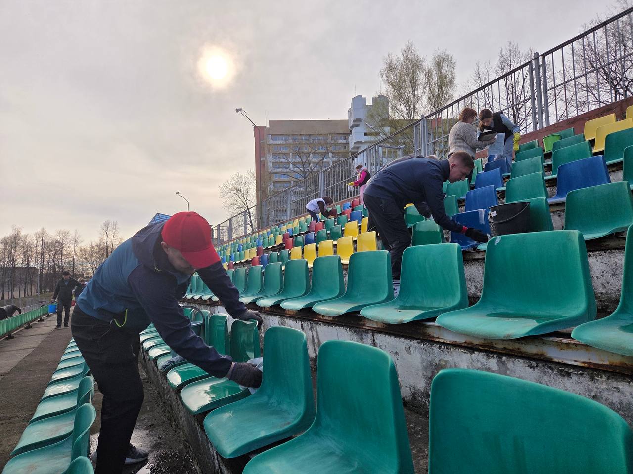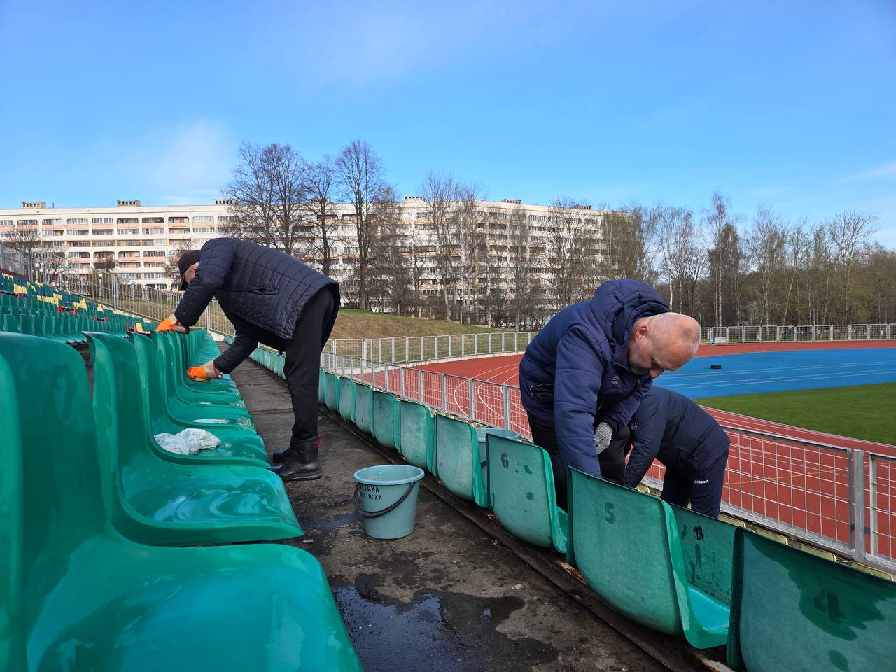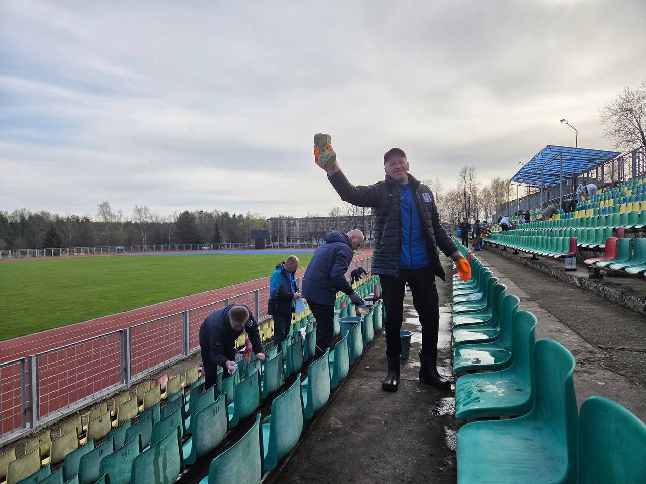Другая часть работников трудились на территории стадиона «Атлант», где подготовили трибуны к предстоящим домашним матчам!