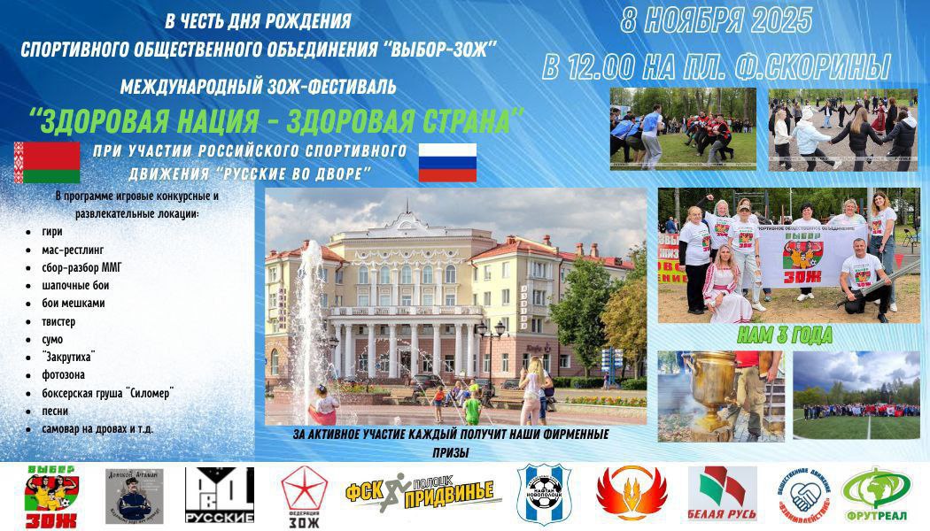 8 ноября с 12.00 до 16.00 на площади Франциска Скорины состоится первый международный ЗОЖ фестиваль «Здоровая нация – здоровая страна».