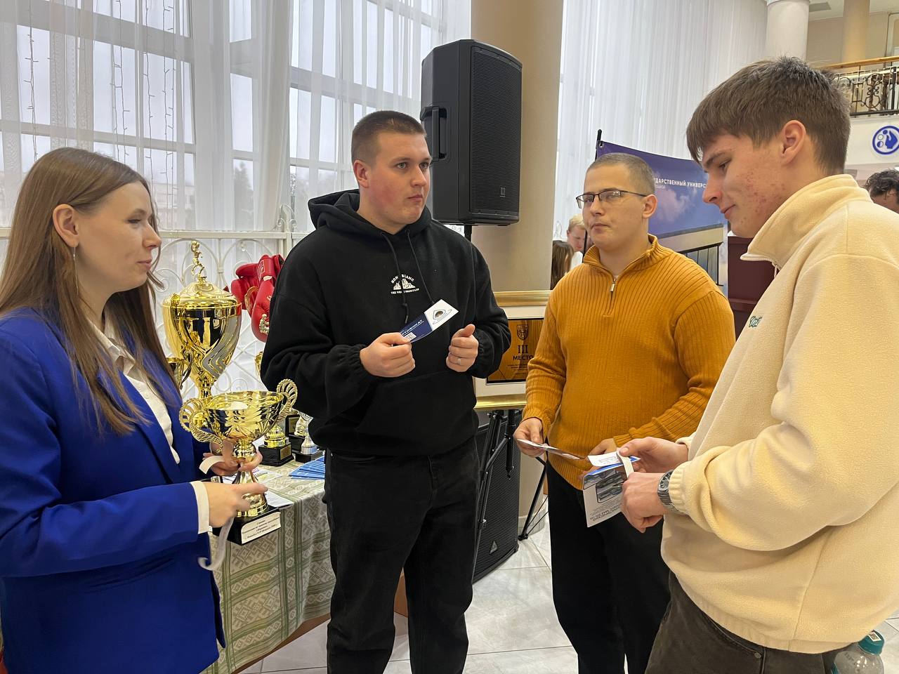 Открыла мероприятие выставка проектов и достижений Новополоцкой молодежи. Гостям предложили познавательные и образовательные площадки, а также творческие мастер-классы. В свою очередь спортивные учреждения города представили гостям и участникам свои достижения. Наши футболистки, Александра Приходько и Дарья Личманова, которые временно на тренировочной паузе из-за травм, стали участниками городского собрания молодых специалистов.