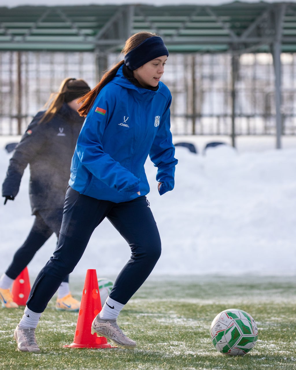 Сегодня девушки провели первую тренировку на искусственном поле стадиона «Атлант»