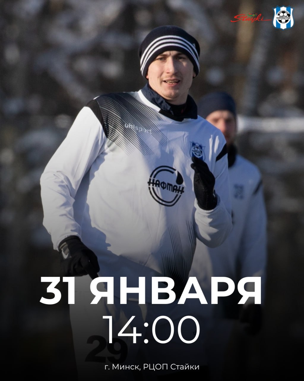 В субботу, 31 января, проведём вторую товарищескую встречу в этом году. В рамках подготовки к новому сезону сыграем со «СКА-1938». Матч пройдёт на поле с искусственным покрытием стадиона РЦОП «Стайки» в г. Минск и начнётся в 14:00.
